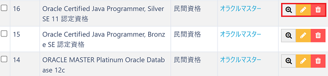 レコードの詳細確認、編集、削除は一覧画面の各レコードの右のアイコンから行うことが出来ます。