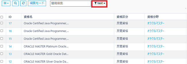 設定した検索設定は、テーブル画面のフィルタボタンで確認できます。
