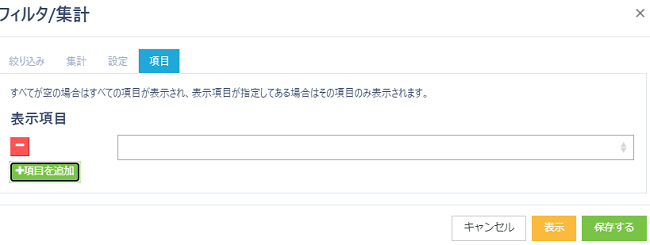 ※「項目」設定で指定した項目のみ表示することが可能です。必要に応じて設定を行います。