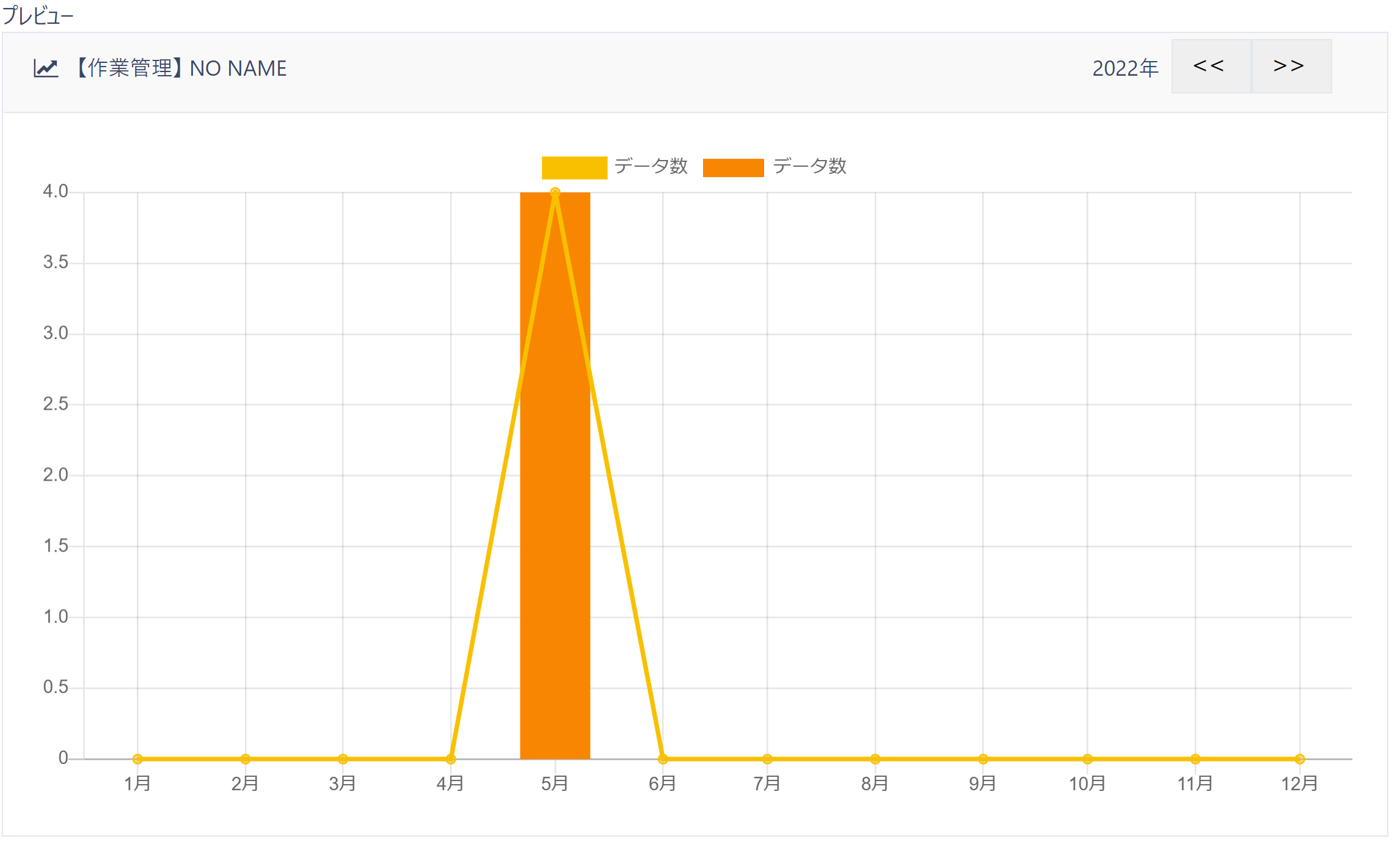 設定後、以下のように1つのチャートに線グラフと棒グラフが同時に表示されます。
