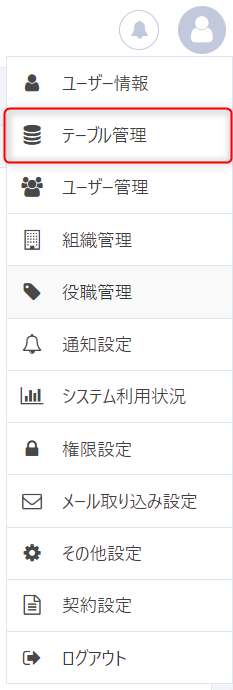 画面右上のアイコンをクリックし、リストから「テーブル管理」を選択します。