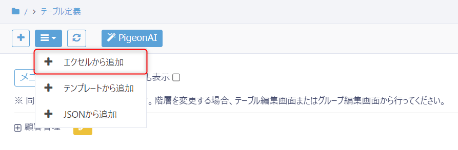エクセルファイルよりテーブルを追加することができます。