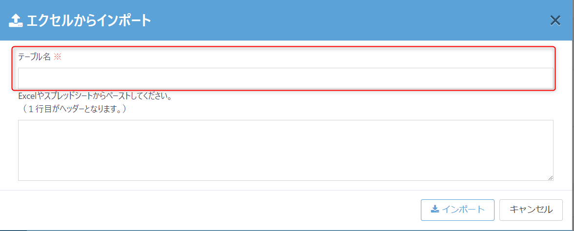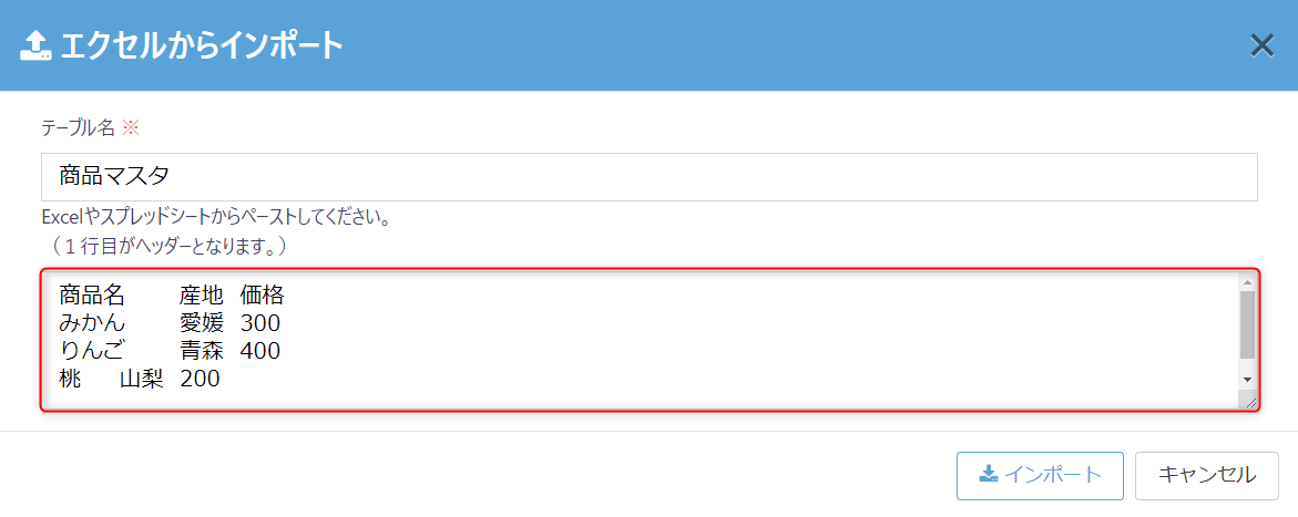 「Excelやスプレッドシートからペーストしてください。」の下に表示されている入力欄にペーストします。