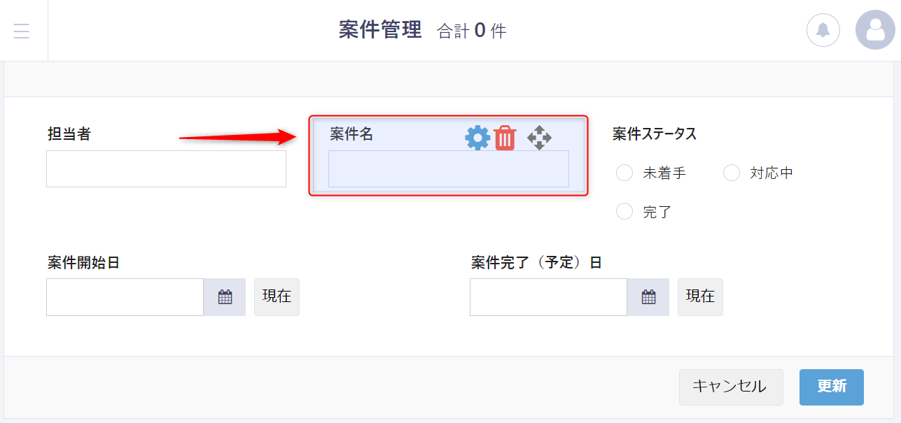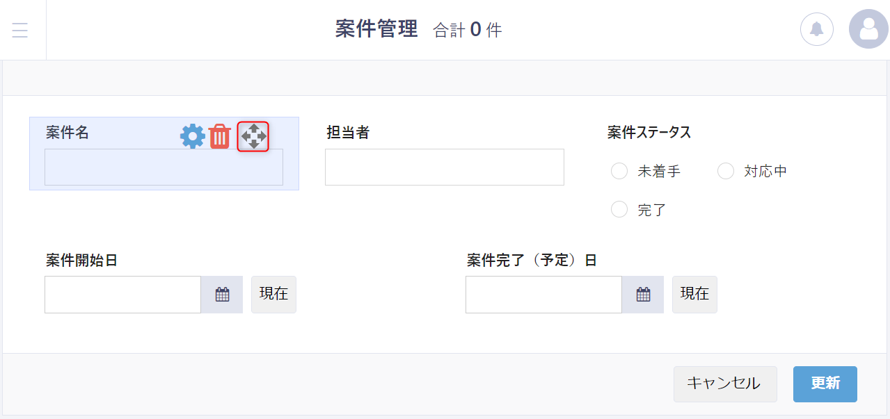 2~4列表示したい項目の「移動アイコン」をクリックし、マウスを移動させ、ドラッグアンドドロップします。