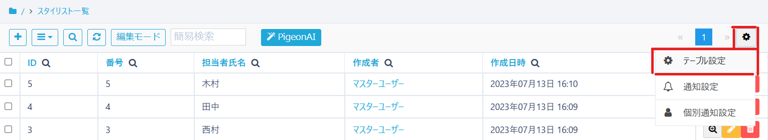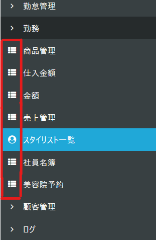 左メニューに表示される際のテーブルアイコンを自由に設定することが可能です。