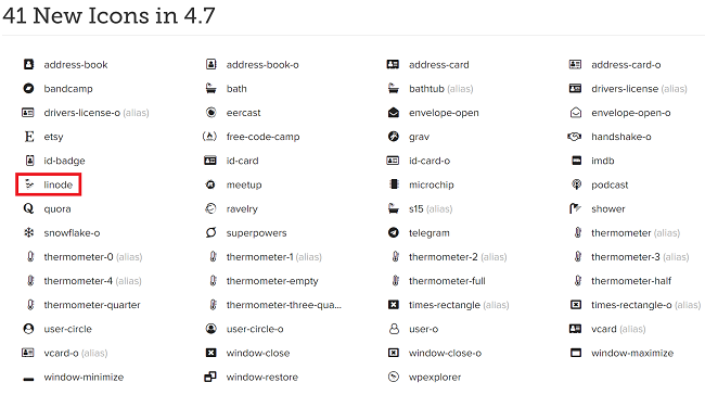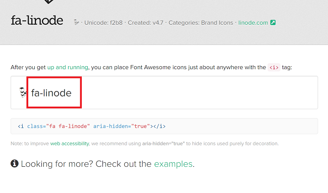 「linode」アイコンのclassが表示されます。「fa-linode」をコピーします。