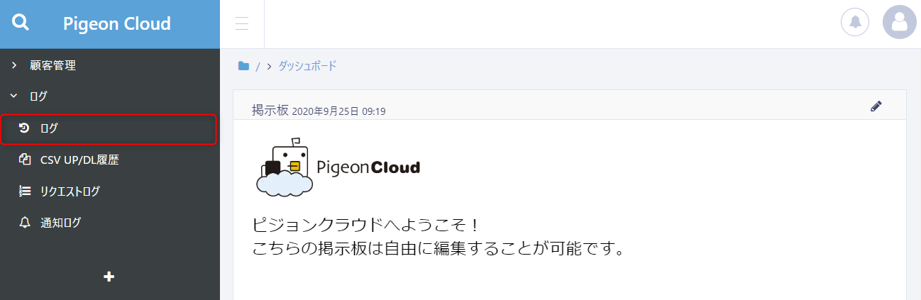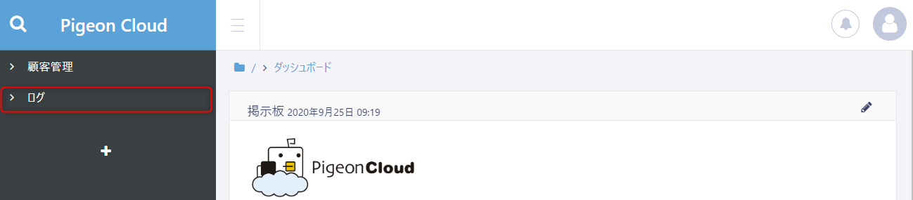 ログ関連のメニューを開き、その中の一番上の「ログ」をクリックします。