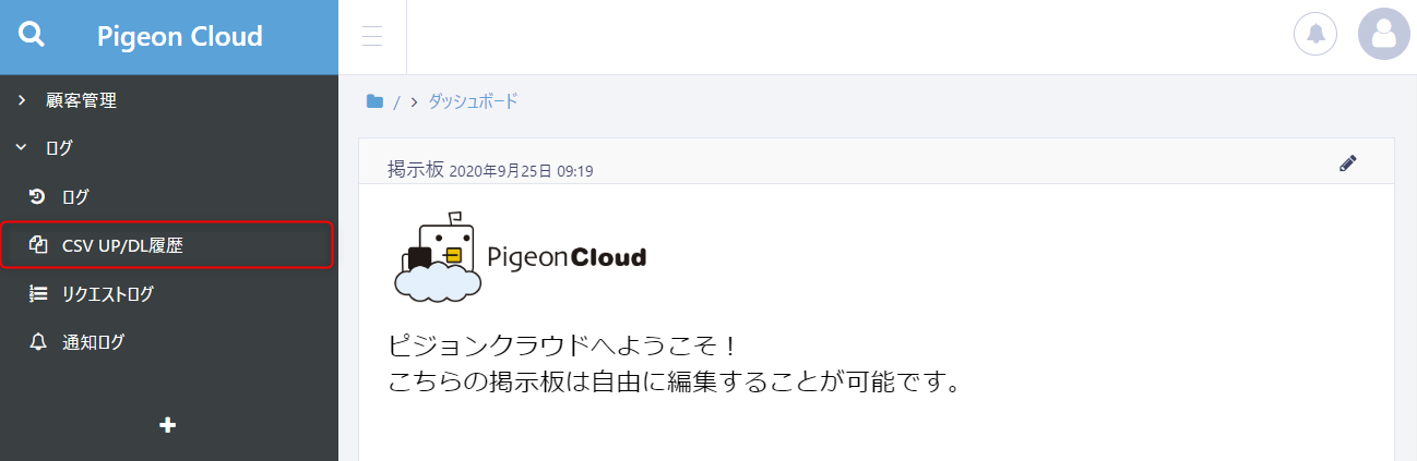 | CSV UP/DL履歴 | CSVのアップロード/ダウンロードのログを確認できます。 |
