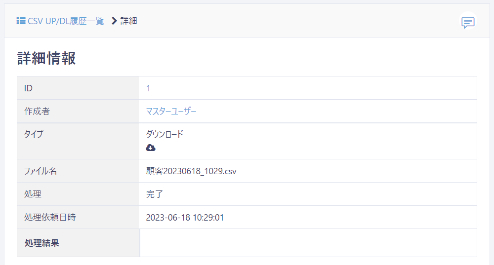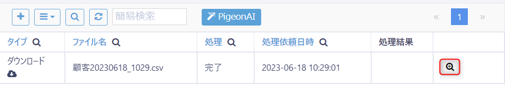 CSVアップロード・ダウンロード等の操作ログが一覧で表示されます。
