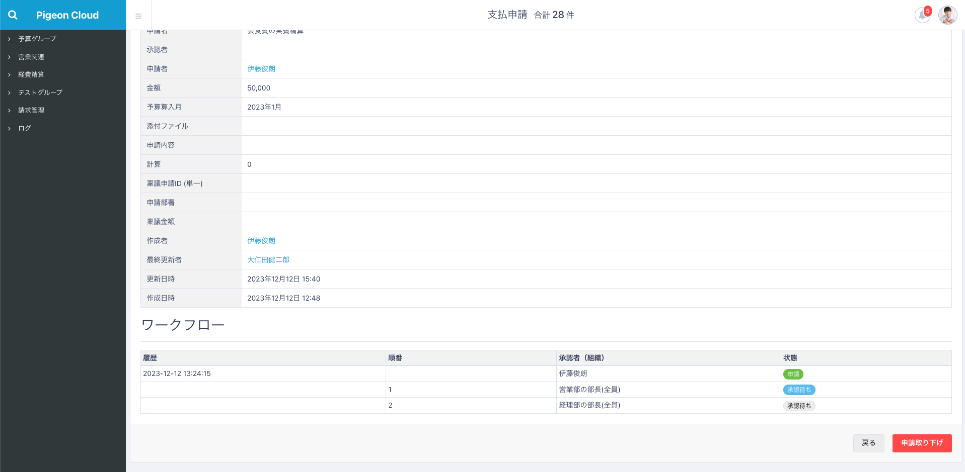 ※否認ステータスでは申請したユーザーまで差し戻された状態となります。