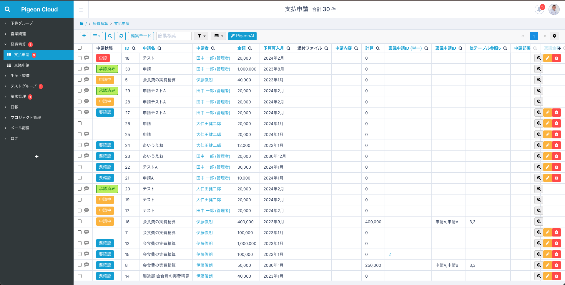 承認依頼が届くとメール等への通知と、承認依頼が届いているレコードがあるテーブルがわかるようにサイドメニューのテーブル名の横に通知バッジが表示されます。