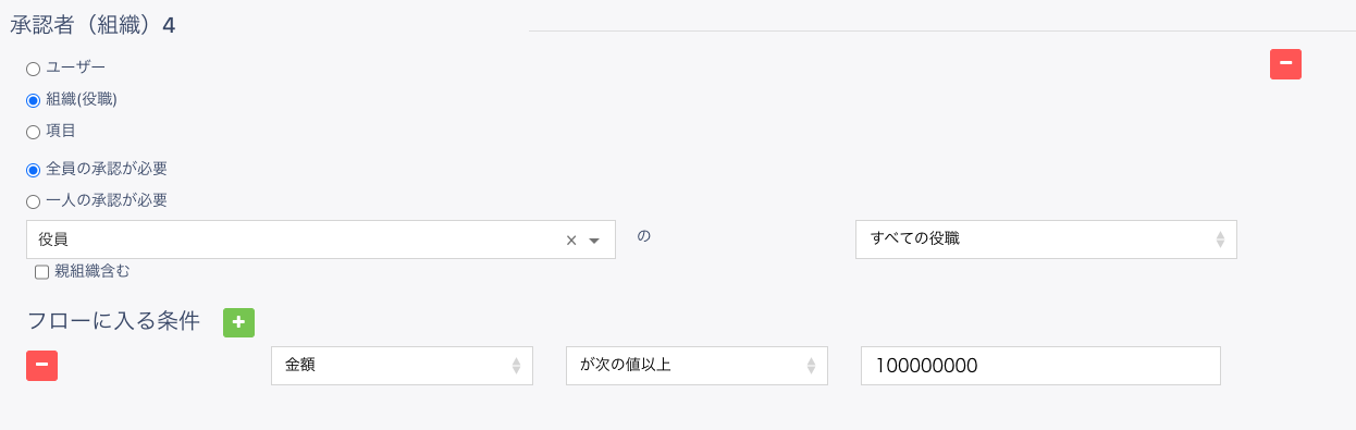 4. フローに入る条件 | 該当の承認ステップで承認申請が発生する条件を設定することができます。