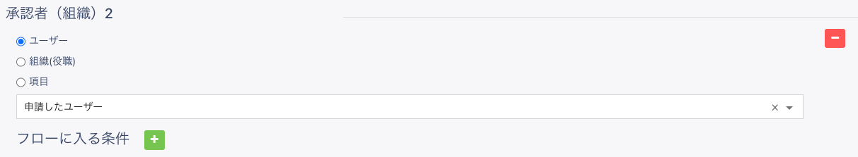 ユーザー : ユーザーを選択した場合、承認をするユーザーを指定できます。例えば、Aさんに承認してもらいたいというときに、Aさんを選択することで、Aさんが承認者として設定されます。