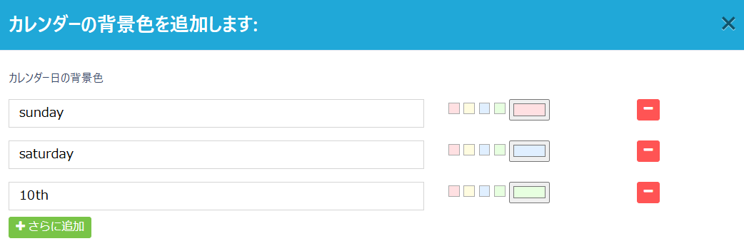 「+カレンダーの背景色を追加」ボタンをクリックします。