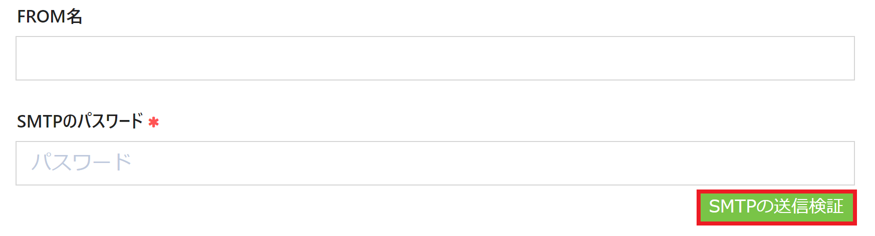 | SMTPのパスワード | ご利用いただいているメールサーバーのSMTPのパスワードを入力します。 |
