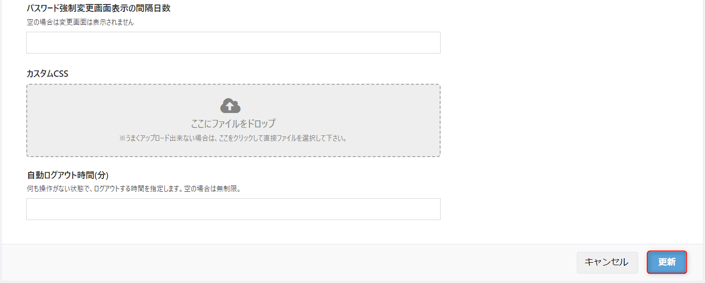パスワード強制変更画面表示の間隔日数の設定を行い、画面下の「更新」ボタンをクリックします。