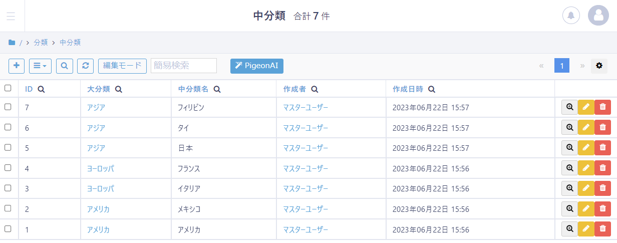 | ②中分類 | 他テーブル参照 | 対象テーブル:中分類マスタ 表示項目:中分類名 |
