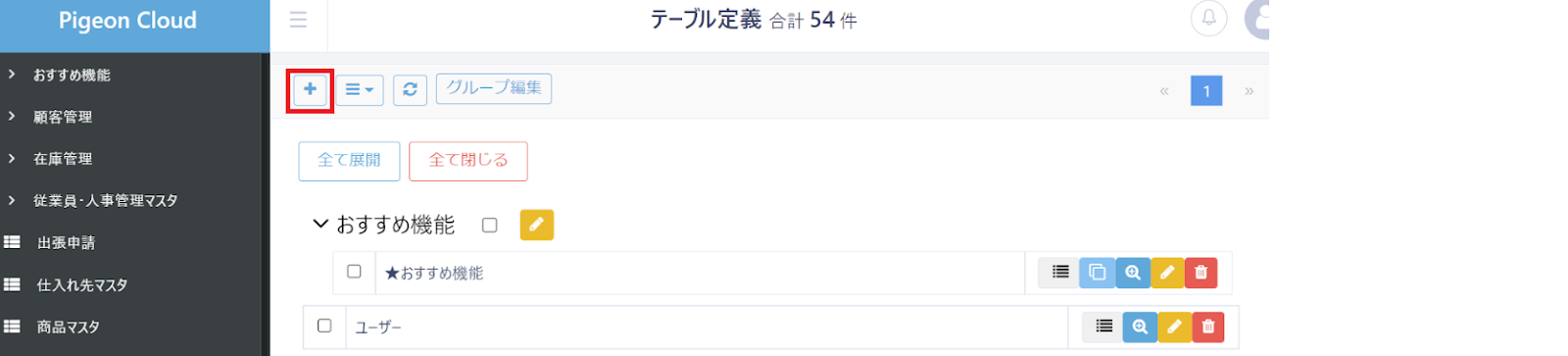 遷移した画面の左上に表示される「+」マークをクリックします。