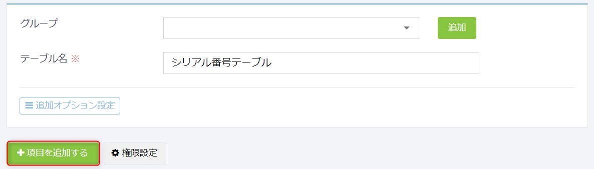 テーブル名に「シリアル番号テーブル」などと入力します。
