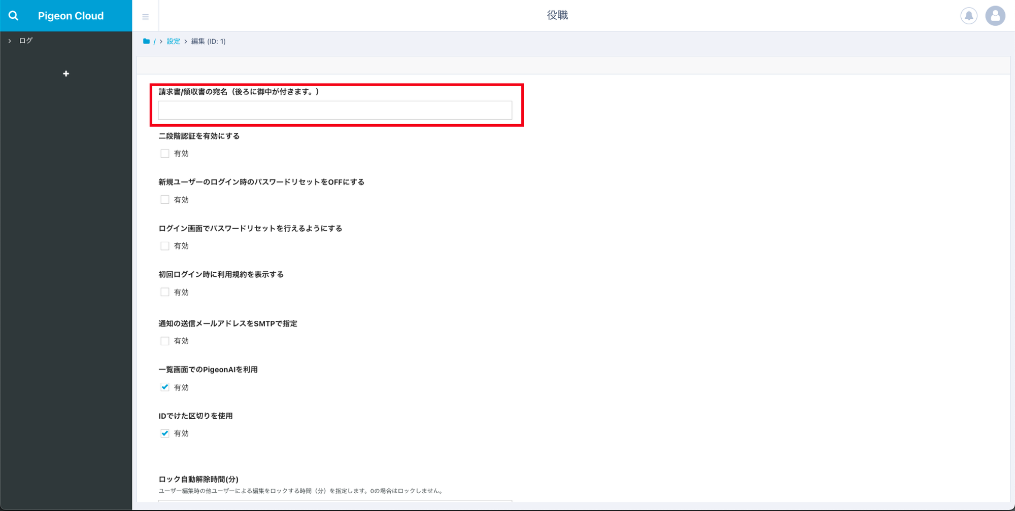 こちらにご入力いただいた、宛名が請求書/領収書の宛名欄に記載されるようになります。