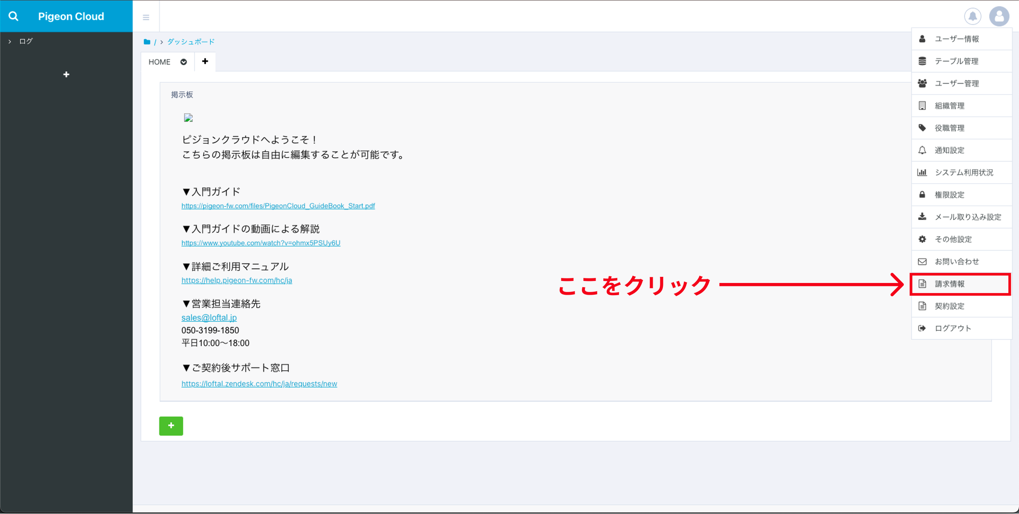 メニュー内の下部にございます「請求情報」をクリックしてください。