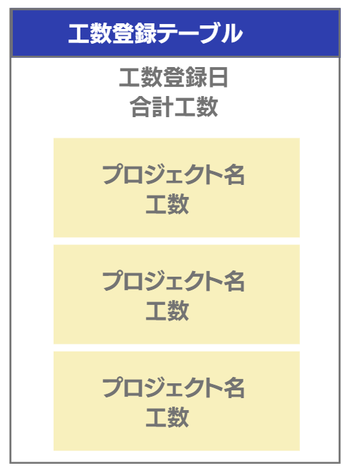 この設定を行うことで、工数登録テーブルの1つのレコードの中で、複数の工数明細を追加して登録することができます。