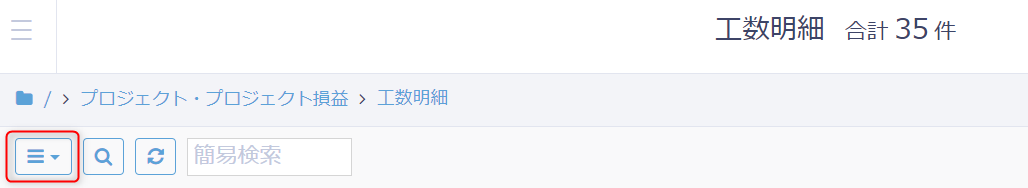 ①工数明細テーブルの画面左上のハンバーガーメニューをクリックします。