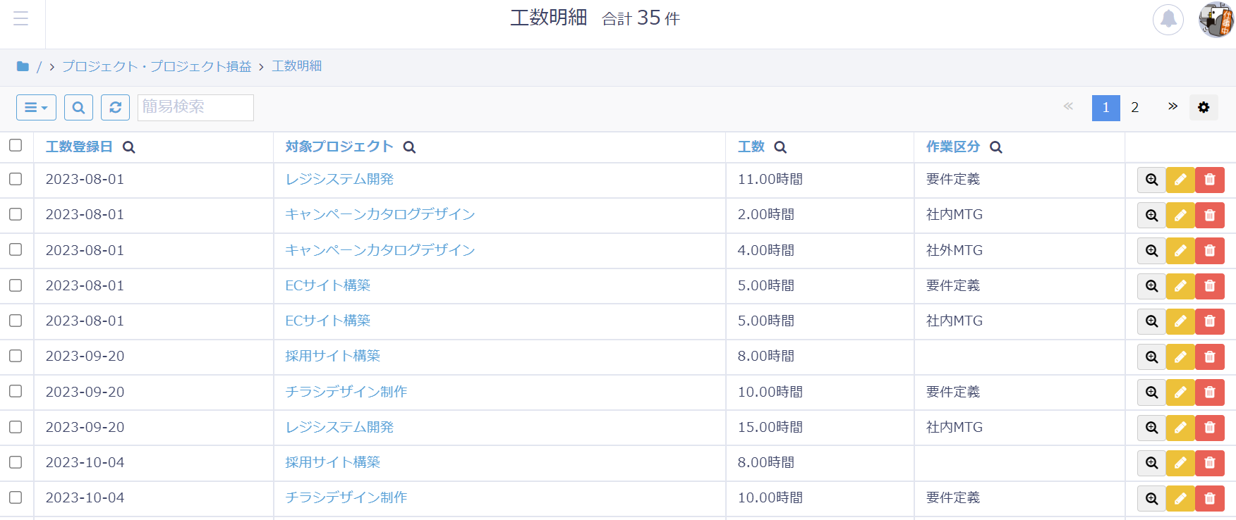 最初に設定した、工数明細テーブルの設定画面を開きます。