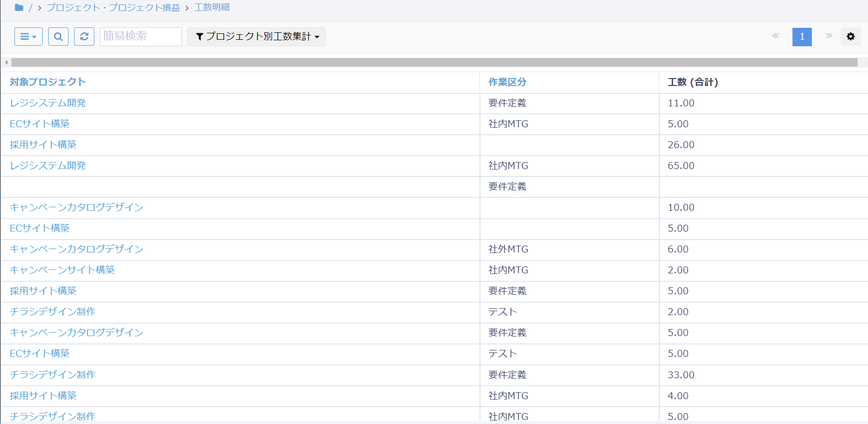 この計算式を設定することで、この工数管理のテーブルの1レコード内に登録された工数明細の工数を合計することができます。
