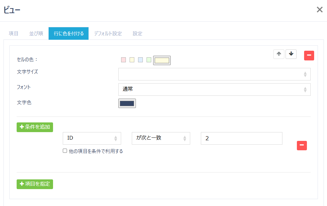 ※右上の↑↓ボタンで、条件の順番を上下に入れ替えすることが可能です。