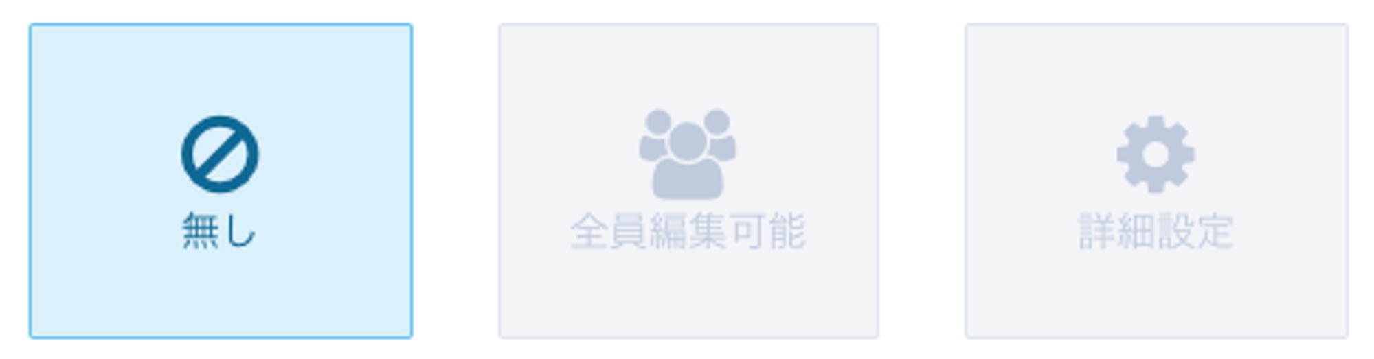 権限は「無し」、「全員編集可能」、「詳細設定」の3つがございます。