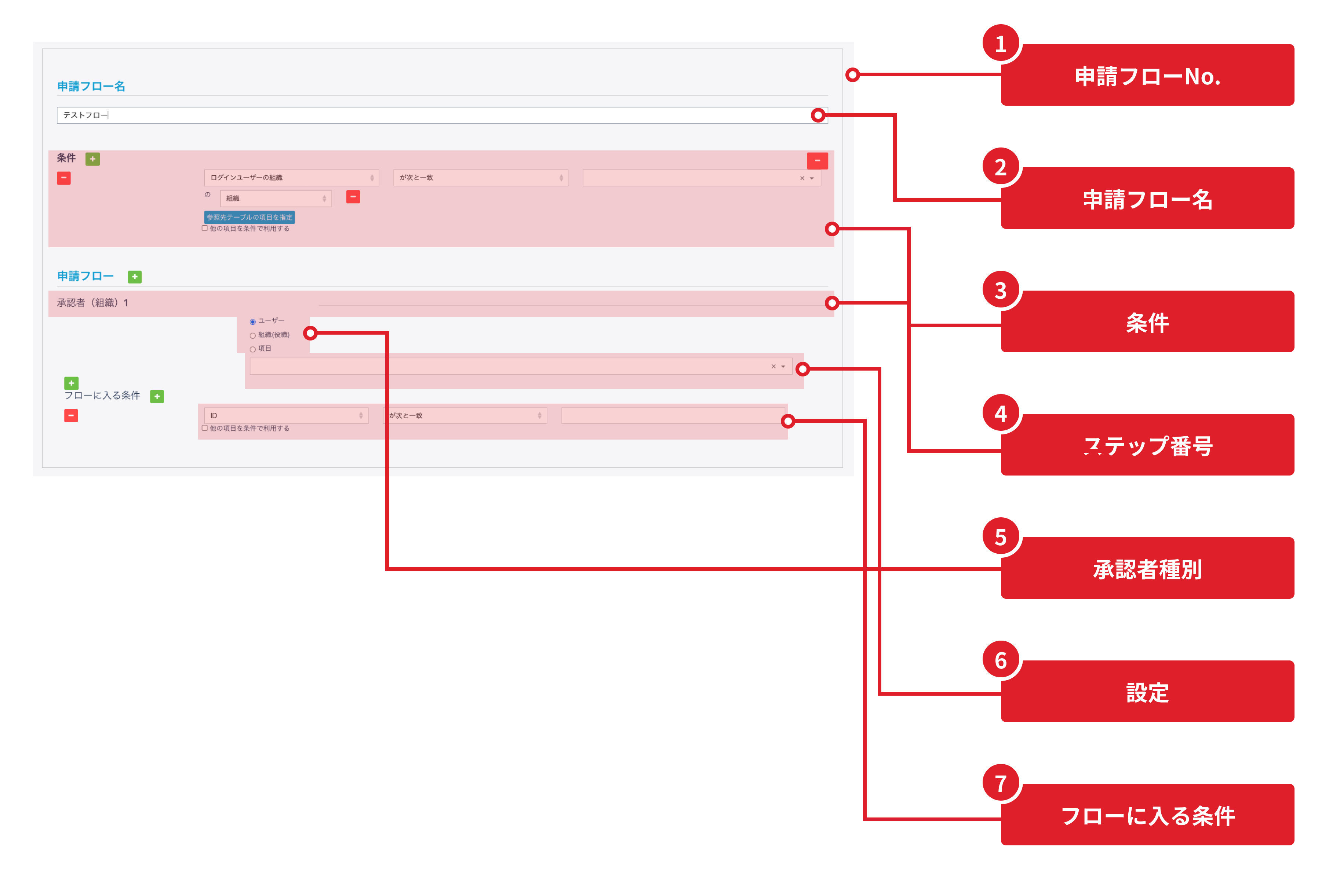 | 2. 申請フロー名 | 申請フローの名称を入力します。 | テストフロー |