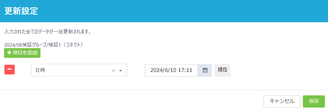 | データ更新ブロック | 入力された全てのデータが一括更新されます。項目と値を指定できます。 |