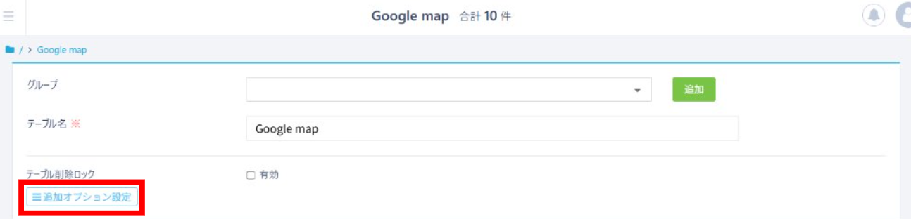 テーブルの「追加オプション設定」から、一覧画面内「地図を表示する」を有効にします。